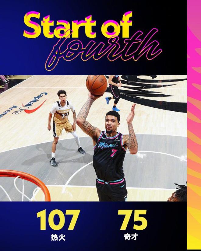 次節比賽,熱火連續兩節單節轟下37分保持旺盛的進攻火力,奇才進攻斷崖式下滑首次單節得分不足20分。前兩節比賽熱火已經多達3人得分上雙,鮑威爾3記三分15分、阿德巴約10中7得到17+6,外加韋爾8中5得到13+9的準兩雙數據,引領熱火已經外線三分23中11。反觀奇才只有喬治3記三分13分一人得分上雙,熱火單節打出37-19攻勢狂勝18分,上半場結束熱火擴大74-52領先奇才22分優勢。